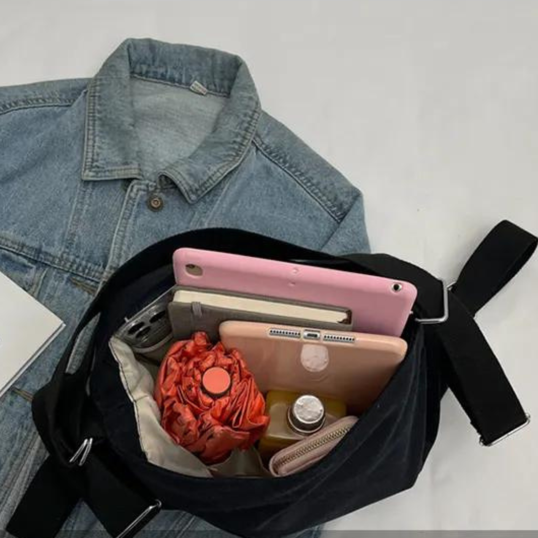 Portez-le partout, en bandoulière ou à l'épaule, et même en sac à dos ! Son intérieur spacieux est parfait pour transporter vos essentiels.