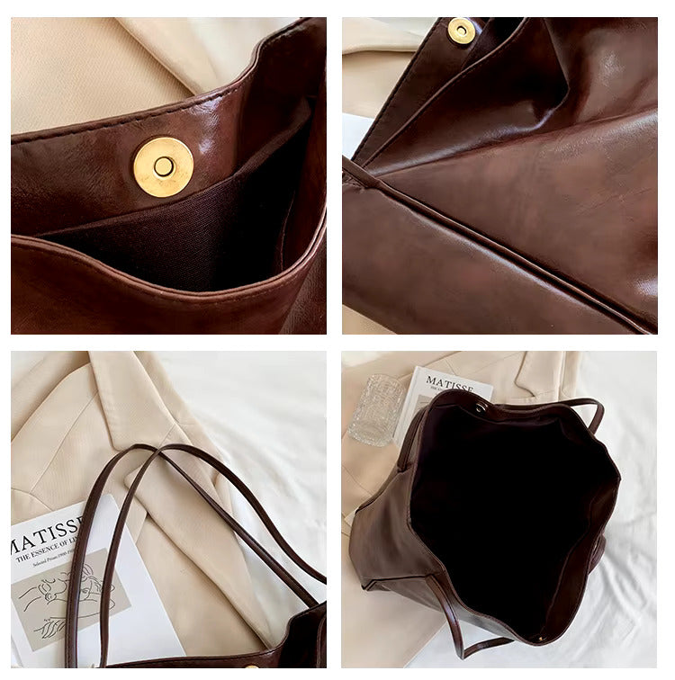 Grâce à son bouton pressoir, fermé votre sac en toute sécurité. Son intérieur spacieux est parfait pour transporter vos essentiels. Portez-le partout, en bandoulière ou à l'épaule, selon vos envies